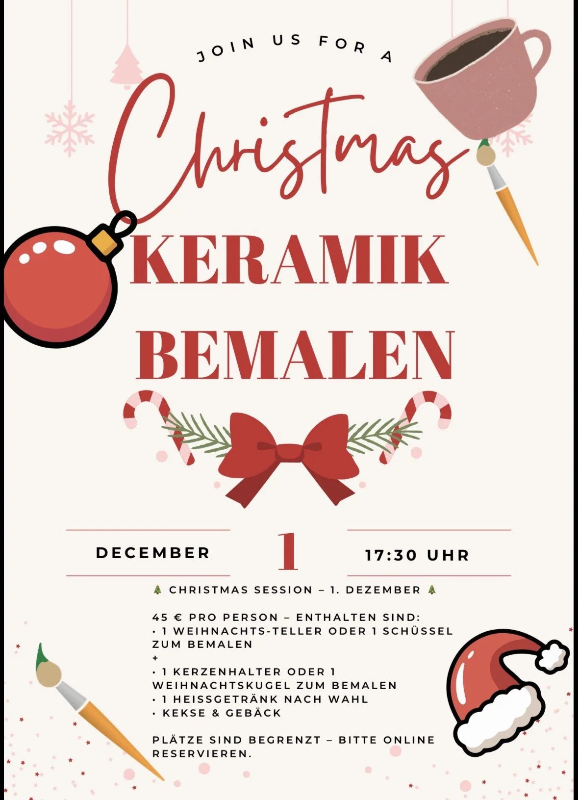 Am 1.12. um 17:30 Uhr machen wir eine kleine, gemütliche Christmas Session – ohne großes Event, einfach ein schöner kreativer Abend im Lieblingsstück 🕯️💛